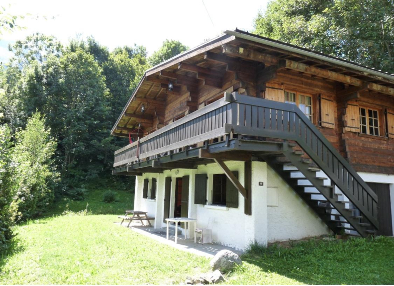 chalet situato di fronte alla catena montuosa su un terreno di 1500 m2 con un ruscello che lo attraversa.