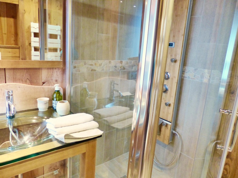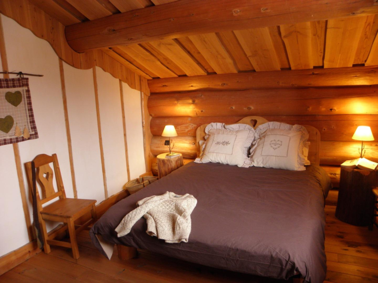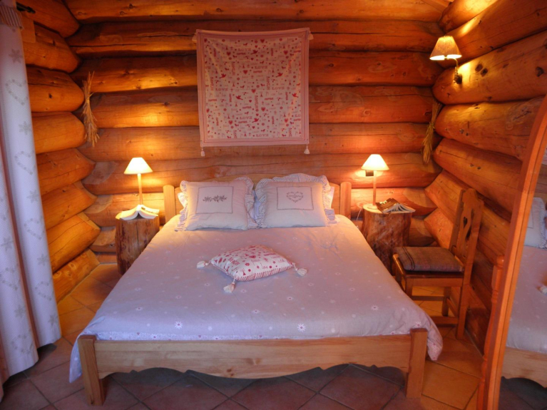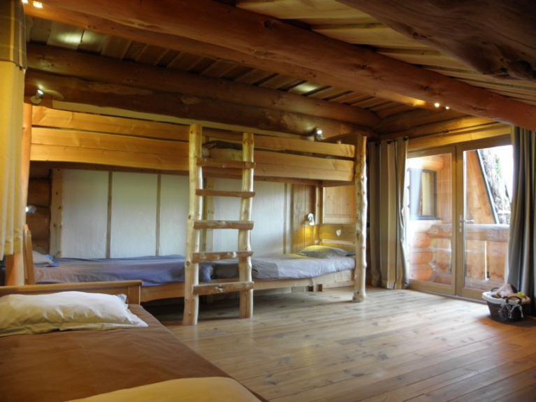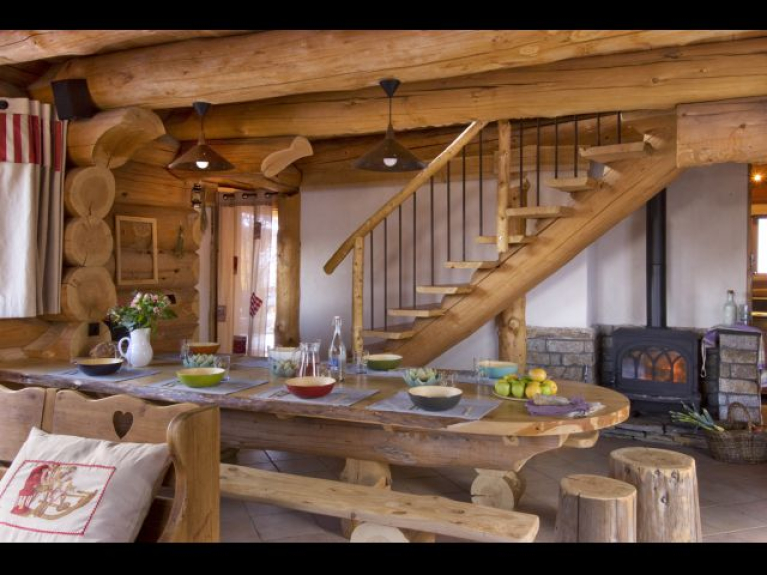 150m2 interni: 3 camere da letto con letti da 160cm + 1 camera rifugio (cabina nella cabina) di 25m2 con 6 letti (è anche la sala giochi dei bambini). Grande soggiorno luminoso con un grande tavolo di cedro per i pasti accanto al fuoco e un accogliente salotto. 2 bagni con doccia. 2 WC. Magazzino, lavanderia e ripostiglio.