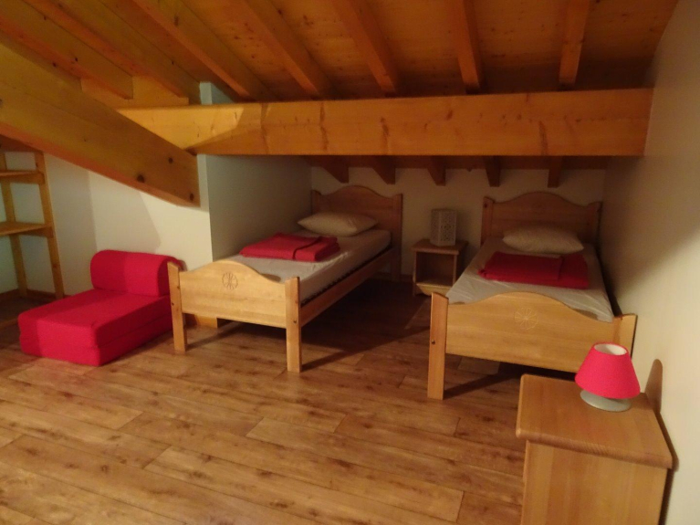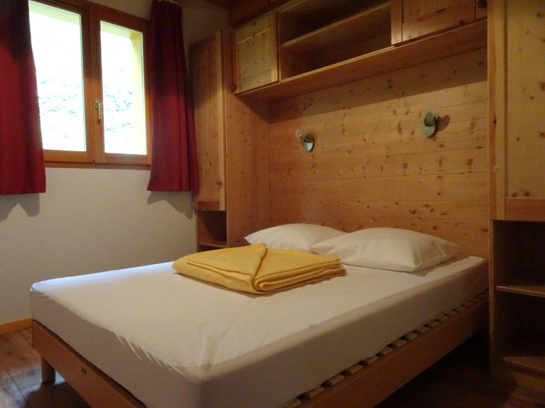 La camera da letto ha 2 letti singoli 90x190 (2 posti letto), un letto a castello (2 posti letto) e offre la possibilità di avere 2 riscaldatori (2 posti letto). Il mezzanino si affaccia sul soggiorno e dispone di 3 letti, 1 letto singolo (90x190) e un divano letto (160x190) (2 posti letto).