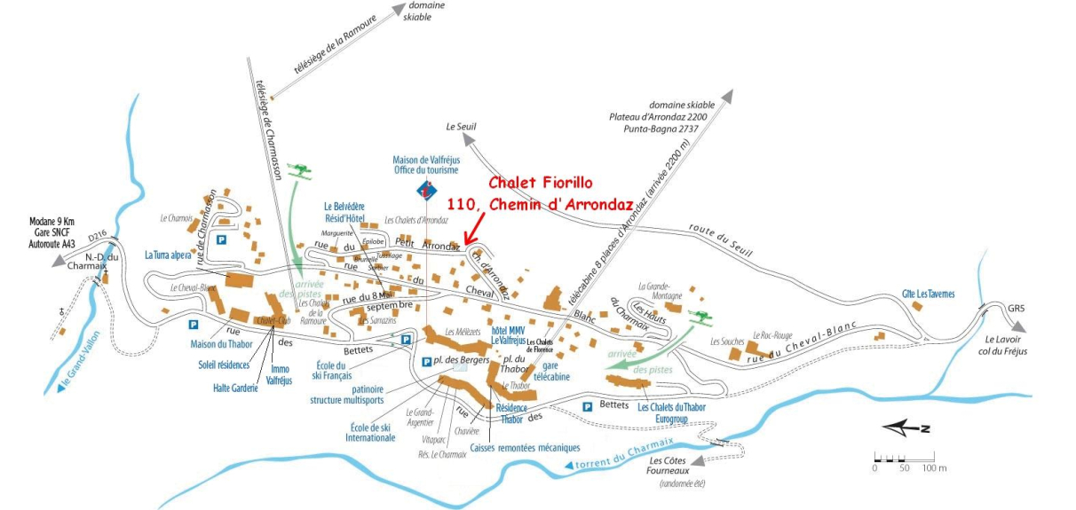 Si trova in una posizione tranquilla ai margini della foresta con una vista superba sul massiccio della Vanoise, a 150m dalle piste e a 300m dal centro della stazione dove ci sono tutti i negozi e le scuole di sci.