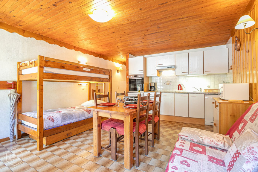 Si compone di un soggiorno-cucina con 2 letti a castello singoli e un letto matrimoniale nell'angolo della montagna che può essere chiuso da un divisorio estensibile.