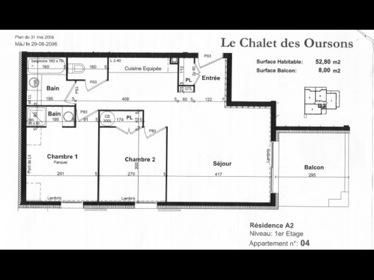 L'appartamento è nu di zecca con rifiniture di alta qualità (arredamento di montagna, falegnameria). Si trova al 1° piano con un balcone che porta all'esterno.