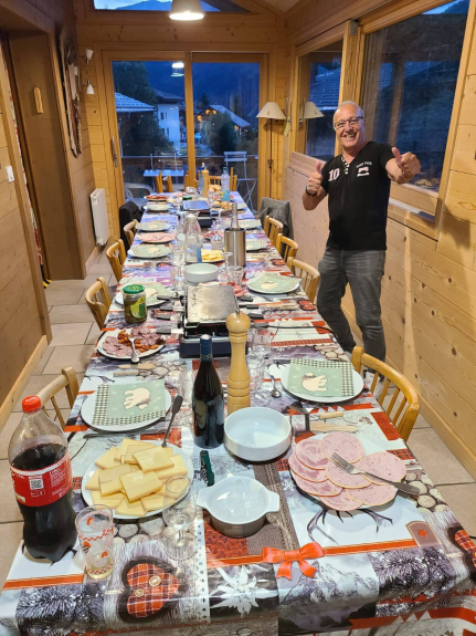 Raclette: formaggio, patate cotte con salumi e insalata + condimento per insalata: 13 € / pers. 1 bottiglia di vino bianco offerta!