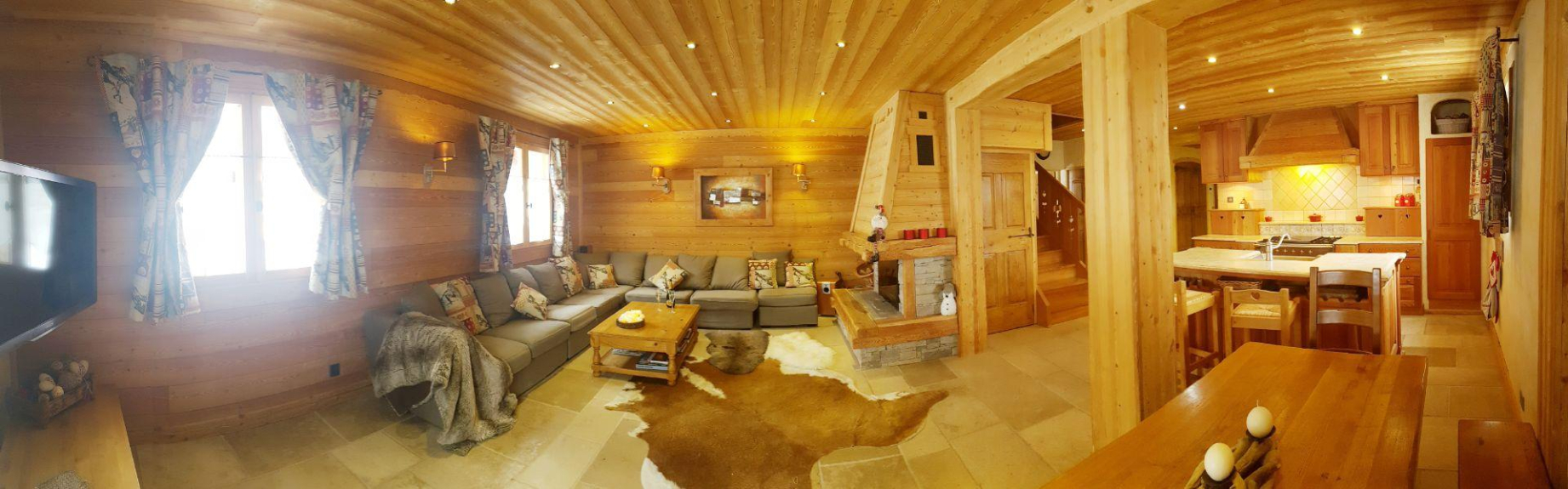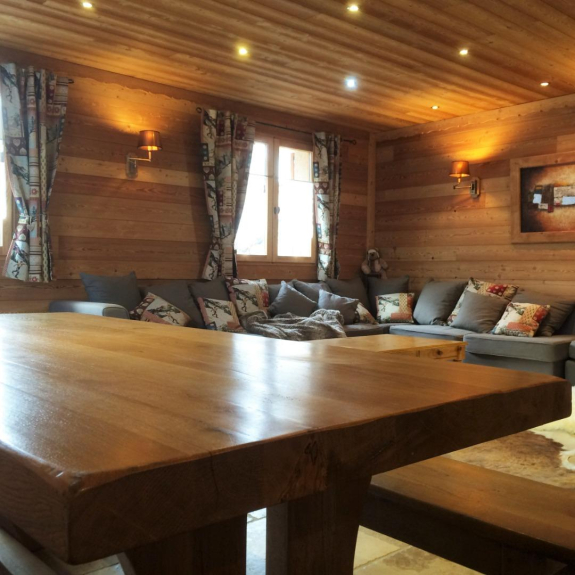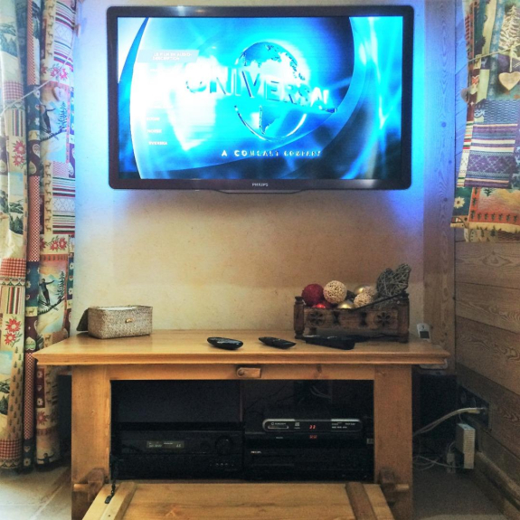 - séjour avec cheminée montagne, canapé angle non convertible, Ecran TV HD 117 cms, Home cinéma, Lecteur Blue Ray, Démodulateur Sagem pouvant recevoir carte abonnement Canal Plus, connection WIFI, coin repas