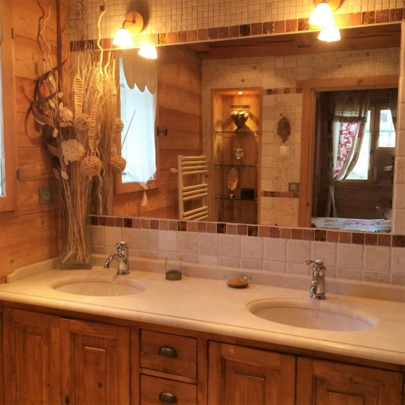 Chalet de charme neuf pierre et mélèze, exposé sud et sud-ouest avec balcon et jardin privatif