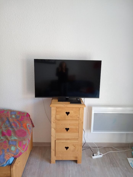 La porte fenêtre de la pièce ouvre sur un balcon plein sud donnant sur l'entrée du village (commerces), ainsi que sur l'arrivée des pistes.