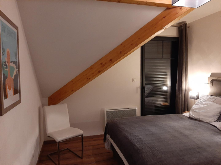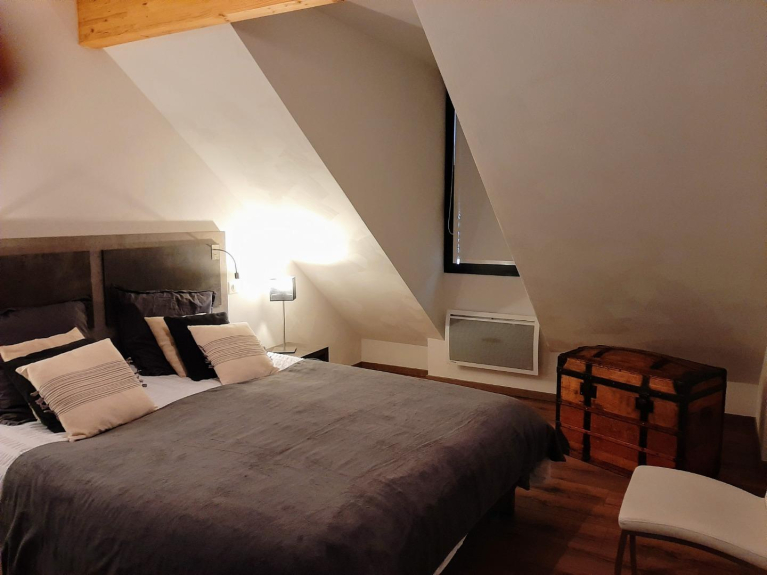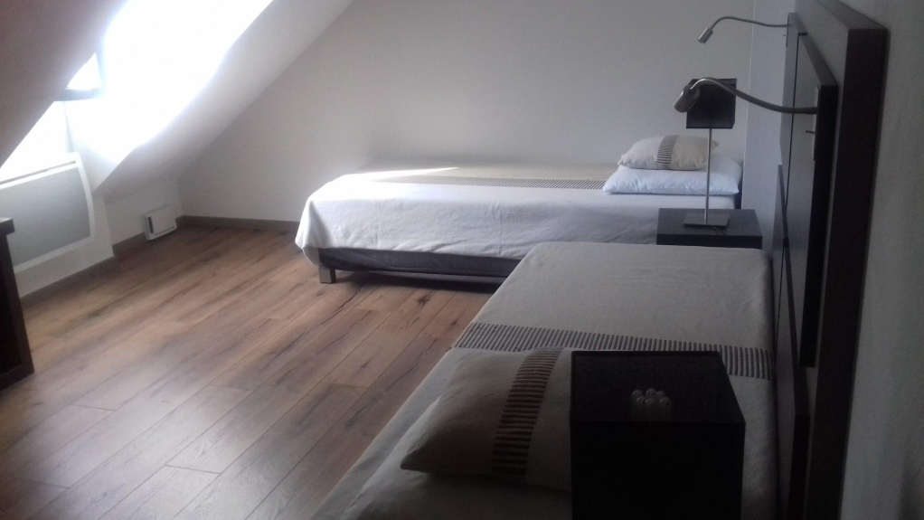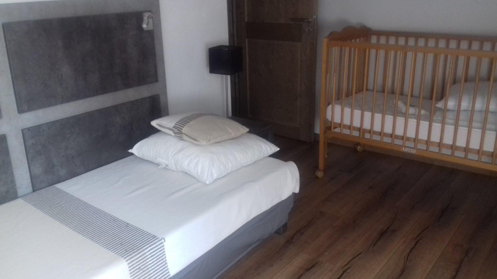 2 chambres avec lit 160, 1 chambre avec 2 lits simples et un lit de bébé.