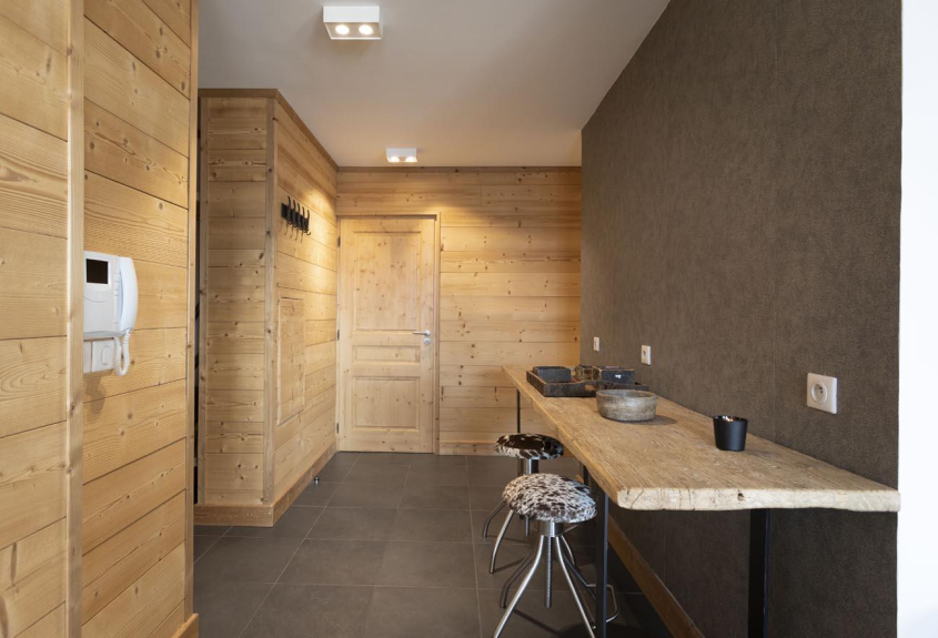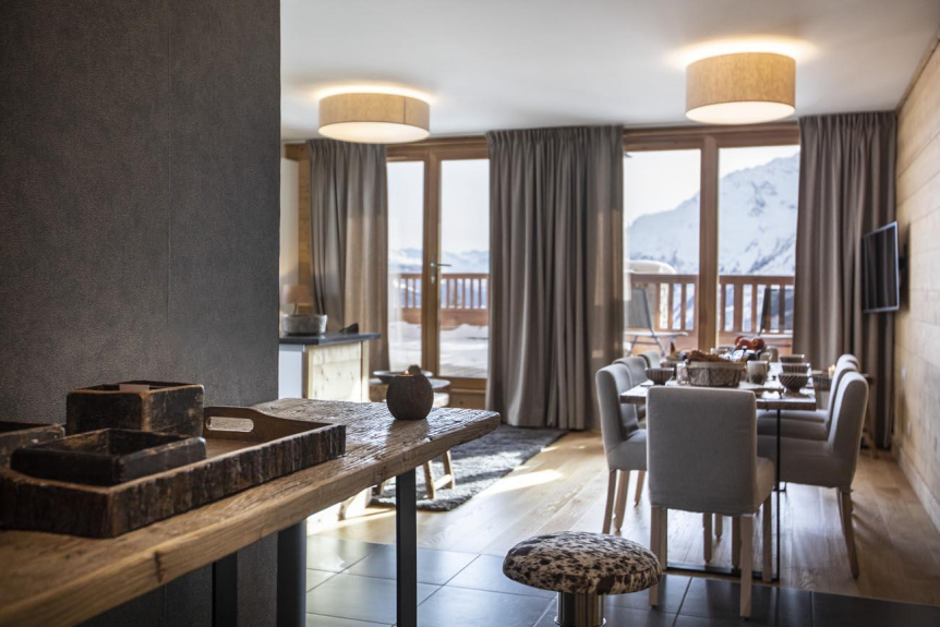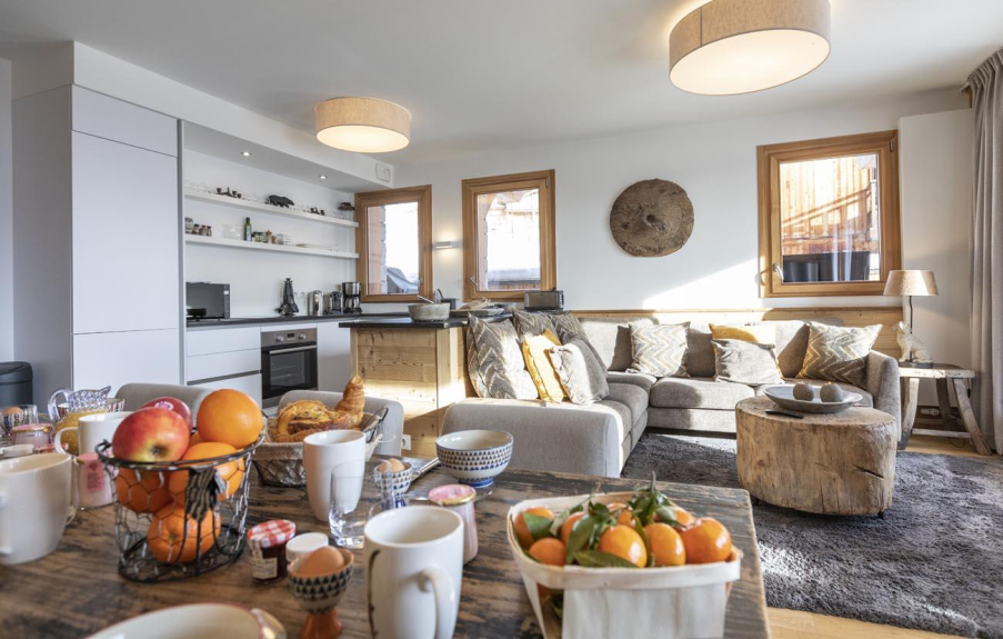 Le Chalet se compose de 8 appartements de grand luxe avec des services personnalisés (4*) compris dans votre location comme la préparation à votre arrivée des chambres et sdb/d, la mise à disposition des serviettes de bain, les kits sdb/d et cuisine de bienvenue, le nettoyage de sortie, le Wifi gratuit et TV satellite, l'espace fitness, le sauna, un salon commun, un espace de jeux et des rangements chauffés pour le matériel de ski (skis et bottines) .... et pas de couchage dans le salon
