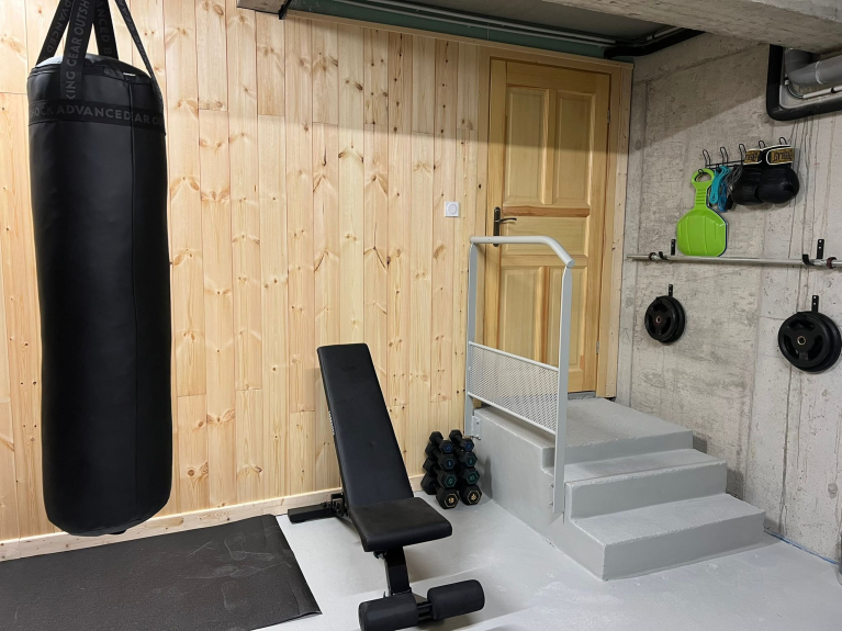 5 chambres, 3 salles de bain, 2 WC, grand garage avec coin musculation, buanderie, terrasse, jardin, spa extérieur (en option) et coin ski.