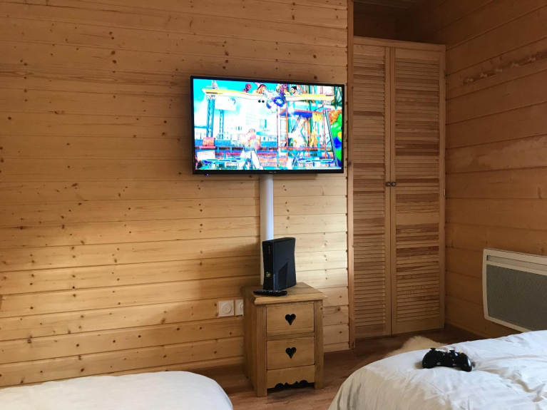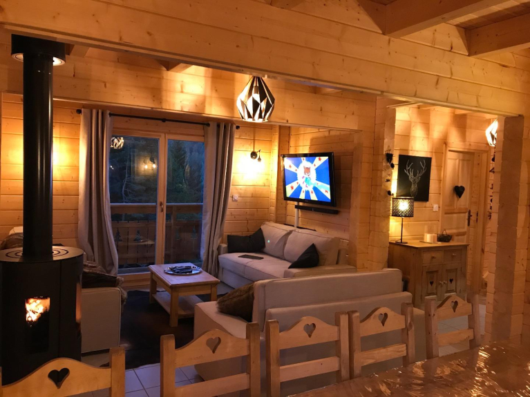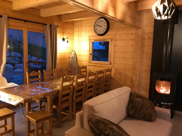 Smart TV, Netflix, consoles de jeux, poêle à bois, cuisine familiale avec appareils à fondue, crêpes, raclette/pierrade, lave-vaisselle, grand frigo-congélateur, plancher chauffant, Équipements bébé : lit parapluie, chaise haute, poussette, baignoire, transat (sans supplément).