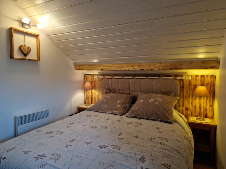 - 1 chambre avec 1 lit 2 places 1.40 M x 1.90 M ( literie de qualité ) + penderie et rangements.