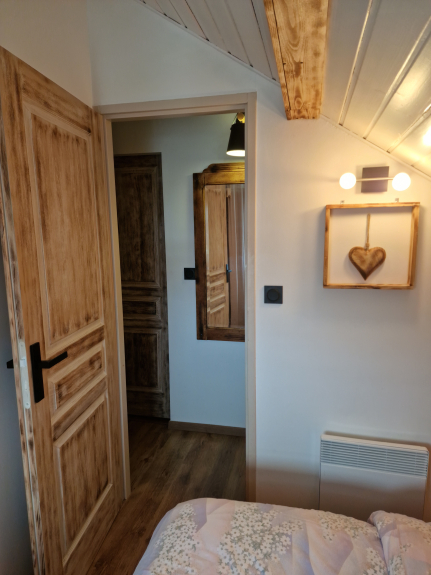 - 1 chambre avec 1 lit 2 places 1.40 M x 1.90 M ( literie de qualité ) + penderie et rangements.