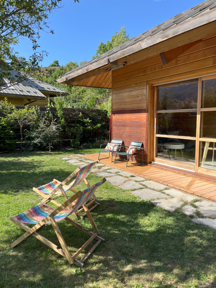 Baignés de soleil, la terrasse et le jardin vous permettront de profiter du ciel bleu et de la superbe vue sur les sommets environnants.