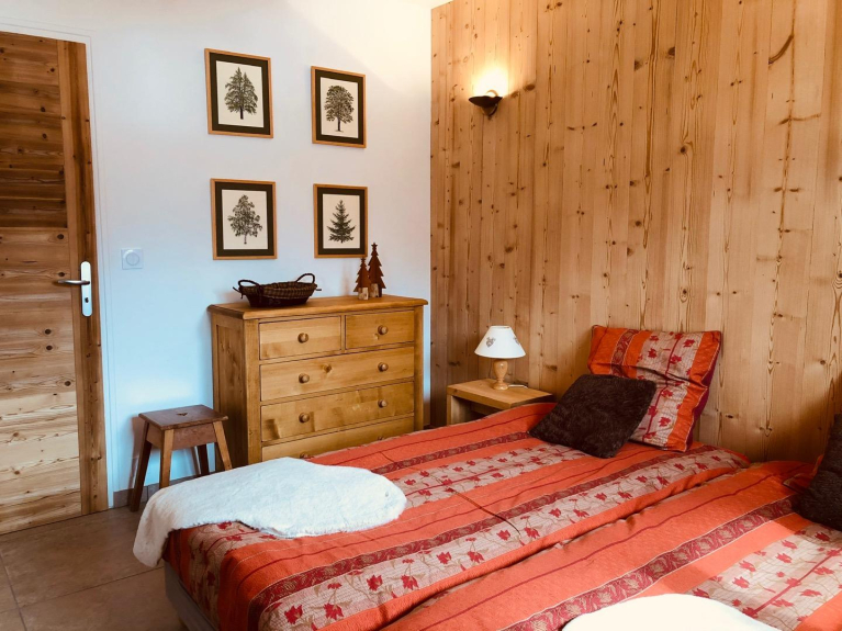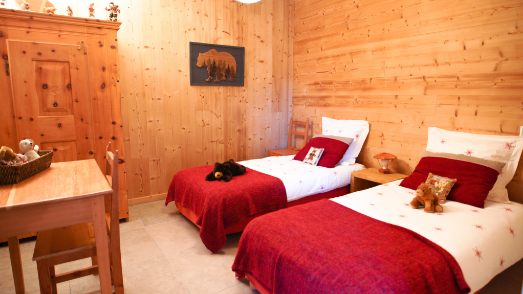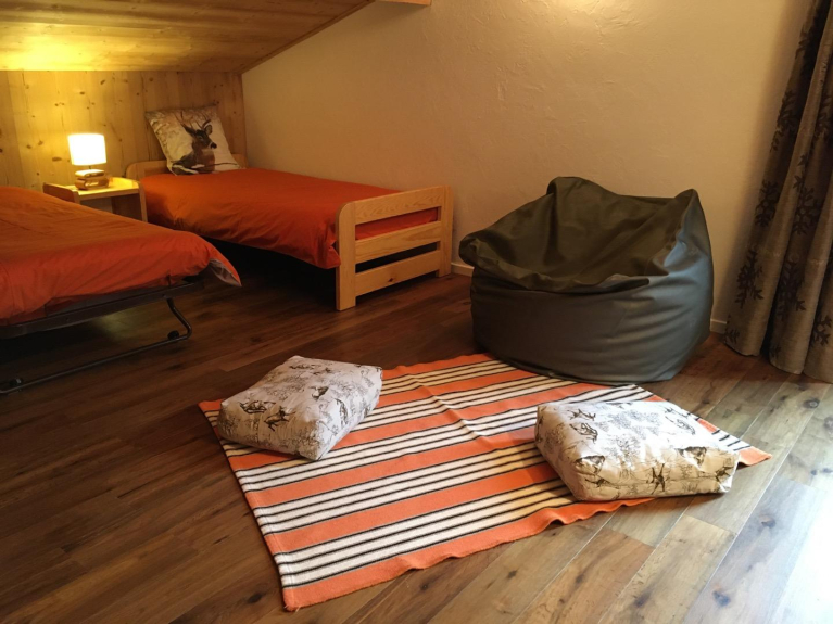 6 chambres confortables avec fauteuils, armoires...dont une avec le coin montagne indépendant pour 2 enfants et sa salle d'eau privée.