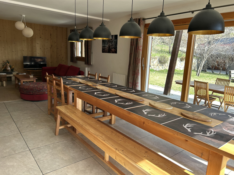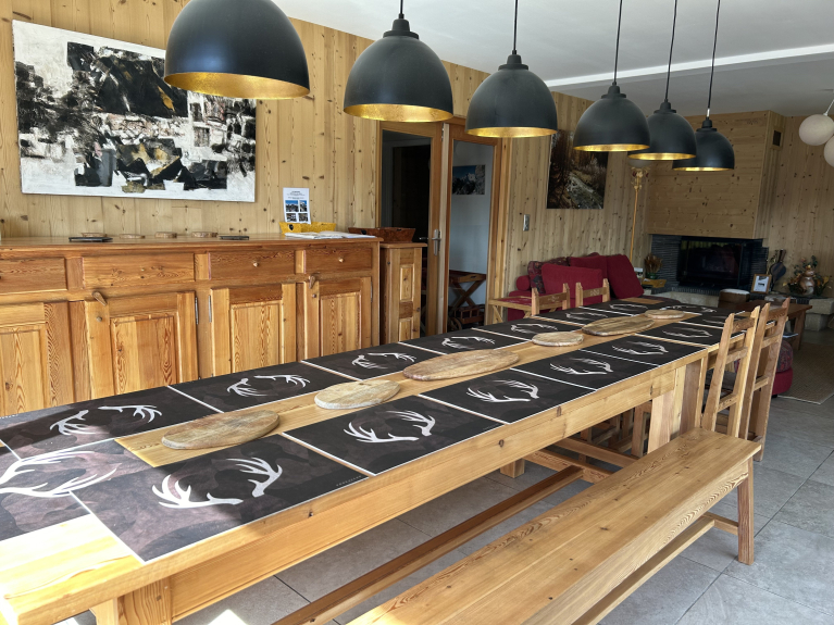 Vous trouverez un vaste et joli chalet de standing, cosy, confortable, fonctionnel et ensoleillé avec une vue dégagée sur la vallée et les pistes.