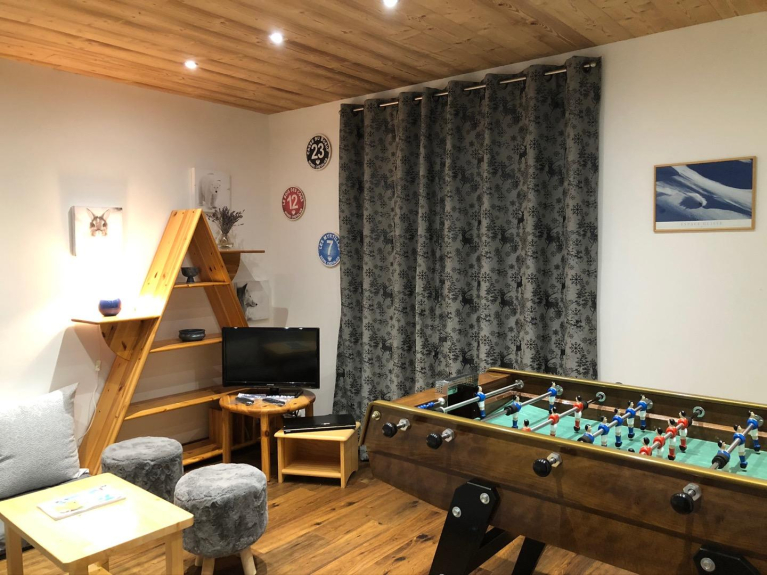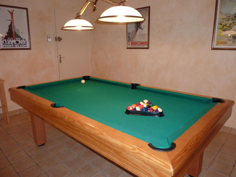 Parfaitement conçu pour les grands groupes et les familles nombreuses, vous y vivrez à l'aise et pourrez profiter le soir du billard, de la salle de jeux avec son baby-foot, du grand séjour pour vous regrouper autour de la cheminée (insert) et autour de la grande table conviviale. (TV, DVD, Chaîne Hifi, internet)