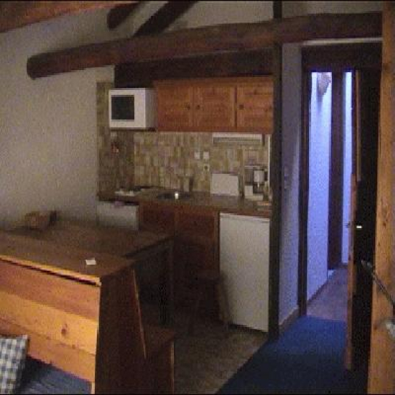 Appt. de charme dans chalet du XVIII siècle. Meublé avec cuisinette entièrement équipé. Salle de bain avec douche et sèche cheveux, radiateur sèche serviettes, tv couleur, lecteur DVD, Mobilier du XVIII.