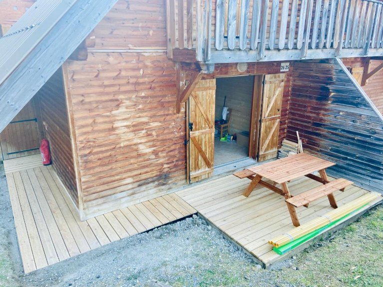 Terrasse avec local casier à ski et parking privatif.