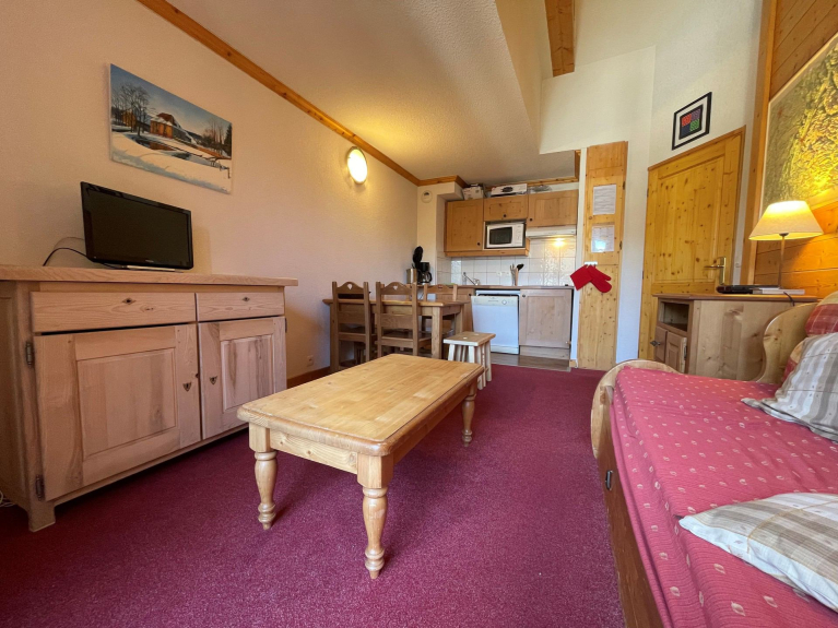 Au premier étage d'une résidence avec piscine intérieure en plein coeur du village, bel appartement pour quatre personnes. Il est situé à 200m des pistes, et à côté de tous les commerces et restaurants.
