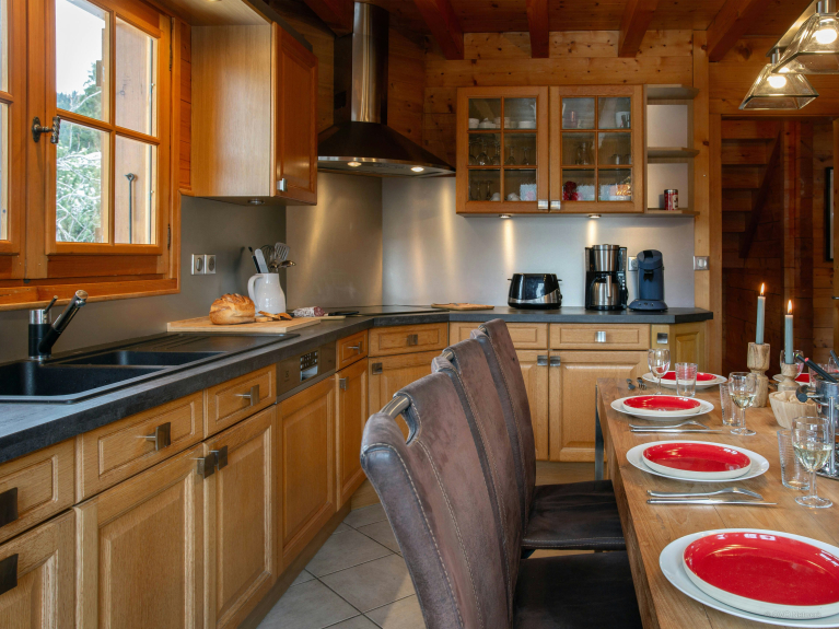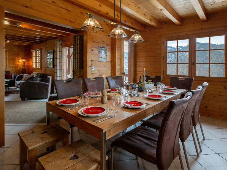 La salle principale comporte une cuisine toute équipée adjacente à la salle à manger pour que la préparation des repas s’effectue en toute convivialité. Après le dîner, la famille prendra plaisir à se retrouver autour de la cheminée pour organiser les aventures du lendemain. En été la terrasse vous accueillera pour un délicieux barbecue, un apéritif au coucher du soleil, ou encore un petit digestif sous les étoiles.
