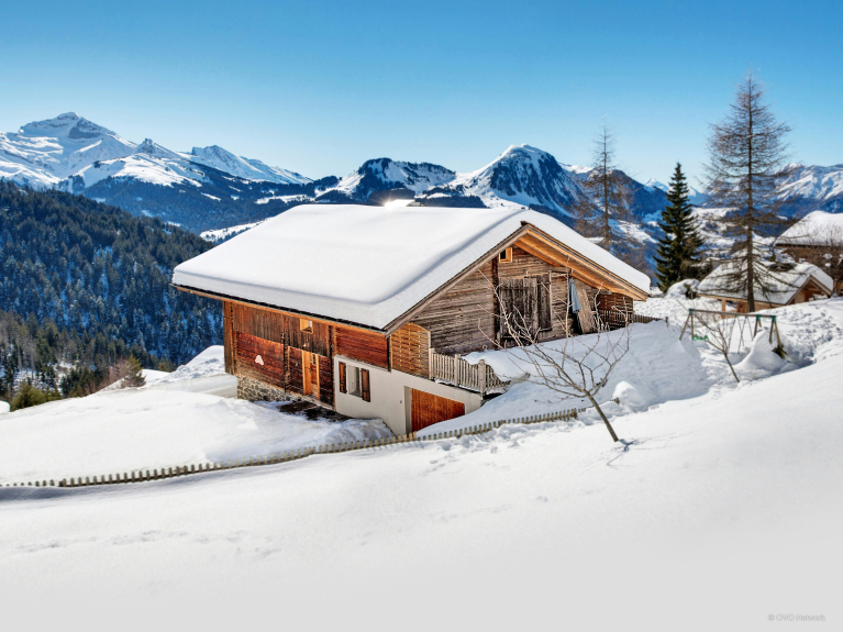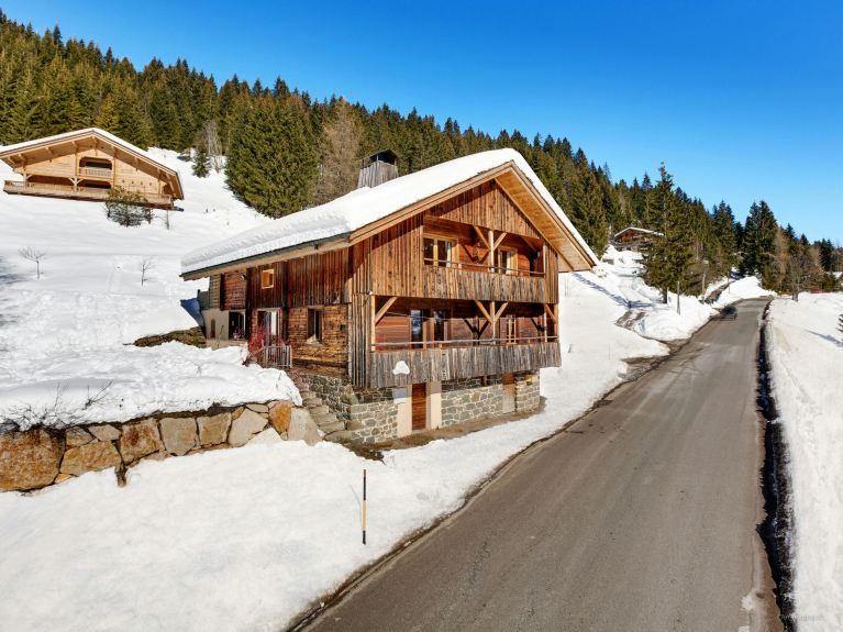 Le chalet se situe à proximité de la route départementale, à seulement 1 km des pistes de la Croix Fry et 6 km du village de Manigod.