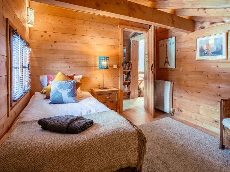 Le salon est équipé d’une cheminée ouverte, et la plus grande chambre à l'étage offre également une télévision et un coin salon, pour que chaque locataire dispose de son propre espace.