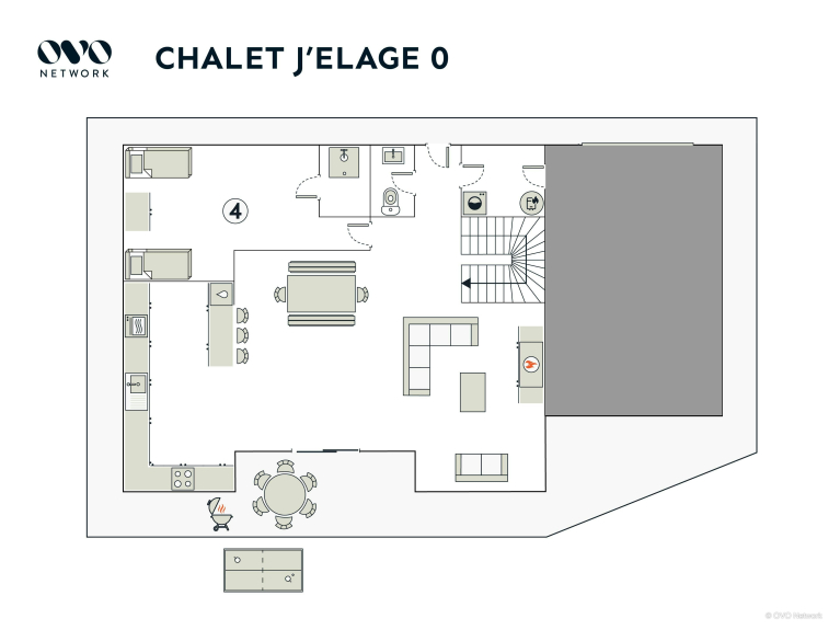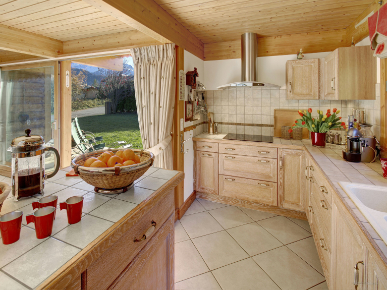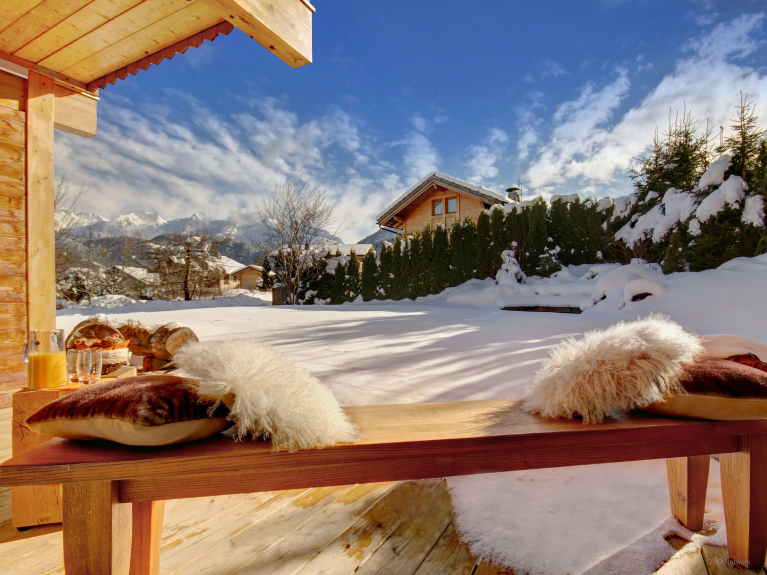 Eté comme hiver, vous apprécierez le grand jardin et son joli banc circulaire en pierre, la table à manger, les transats et la table de ping pong. Eloigné de la route principale, le jardin s’ouvre uniquement sur le chemin qui donne accès à la petite copropriété de 5 chalets.