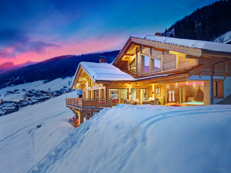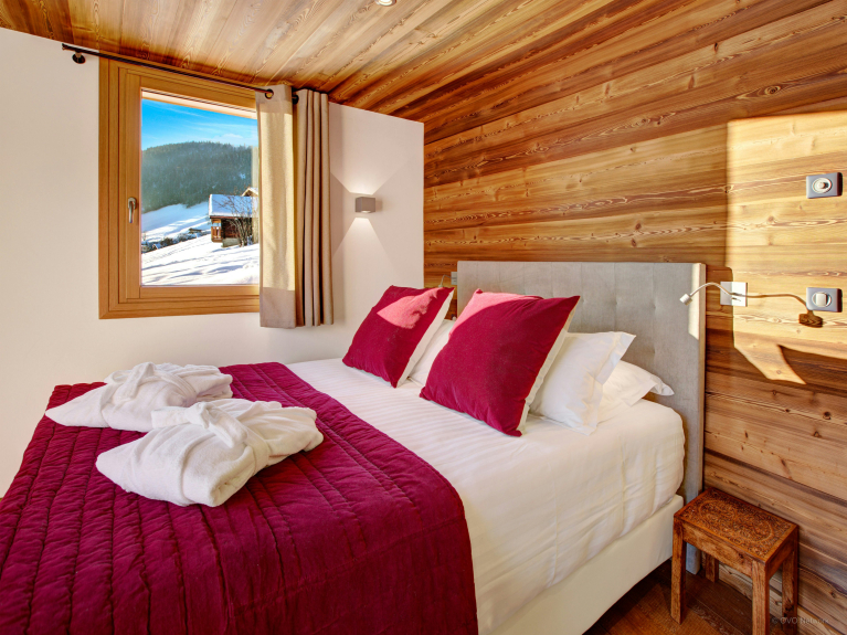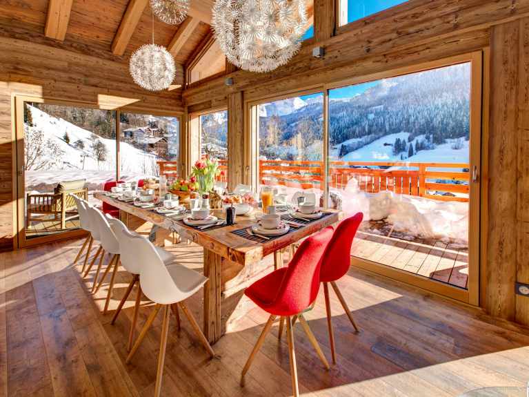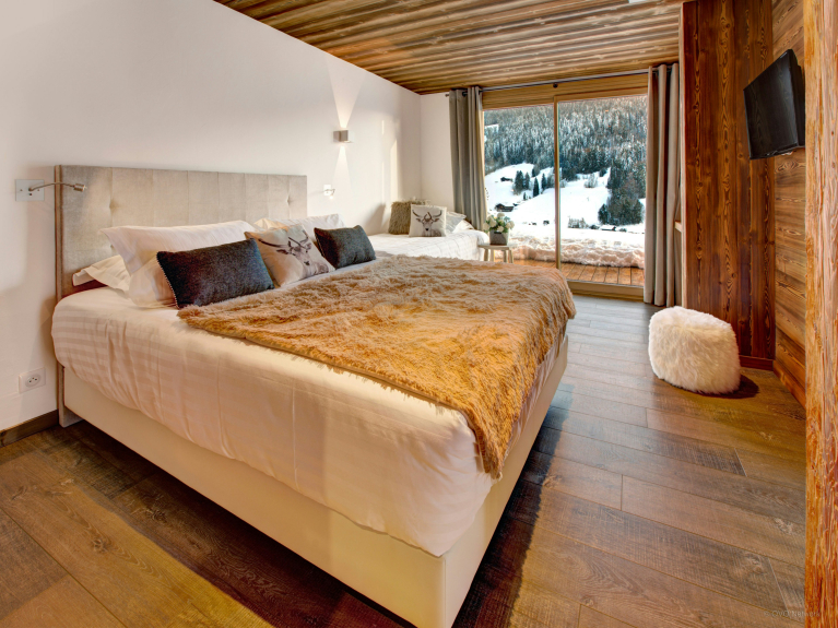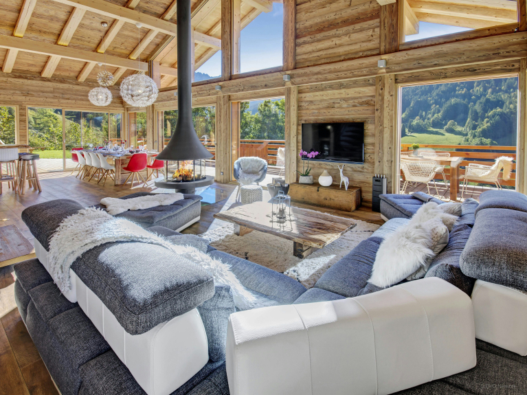 Ce chalet vous séduira à plus d’un titre : la qualité de la réalisation et des matériaux utilisés, la décoration et les finitions, les détails luxueux, les équipements et le soin particulier apporté autant à l’intérieur qu’à l’extérieur de cette superbe propriété, implantée dans un environnement exceptionnel. Vous pourrez admirer des vues sublimes depuis chacune des pièces du chalet, sans aucun vis-à-vis et protégé des regards quand vous serez dehors. La terrasse couverte, abritant un vaste spa thérapeutique de 8 places, est sans nul doute un des points forts du chalet, idéal pour des moments de détente toute l’année.
