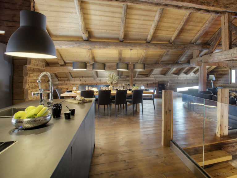 À votre arrivée, l’intérieur de la maison vous laissera sans voix. Récemment rénové, sa décoration épurée est digne de celles que l’on voit dans les magazines. Vous y trouverez tout ce dont vous avez besoin pour passer un séjour agréable. Une cuisine tout équipée, un salon confortable, des chambres et des salles de bain élégantes, un espace TV et de jeu et enfin, un local à skis très pratique.