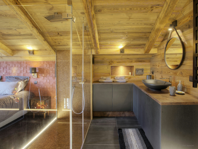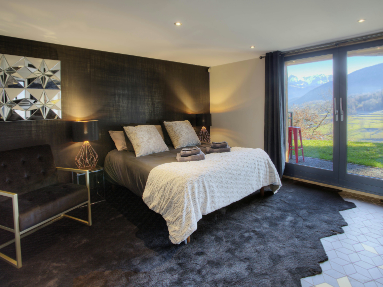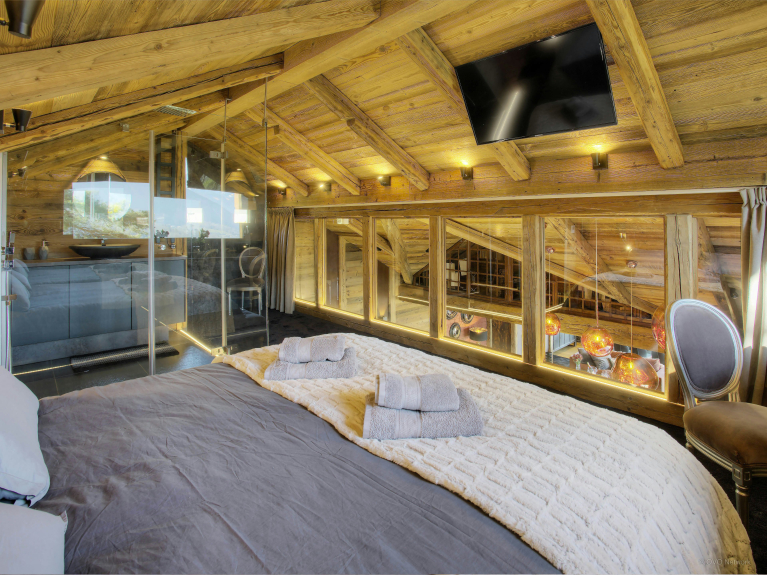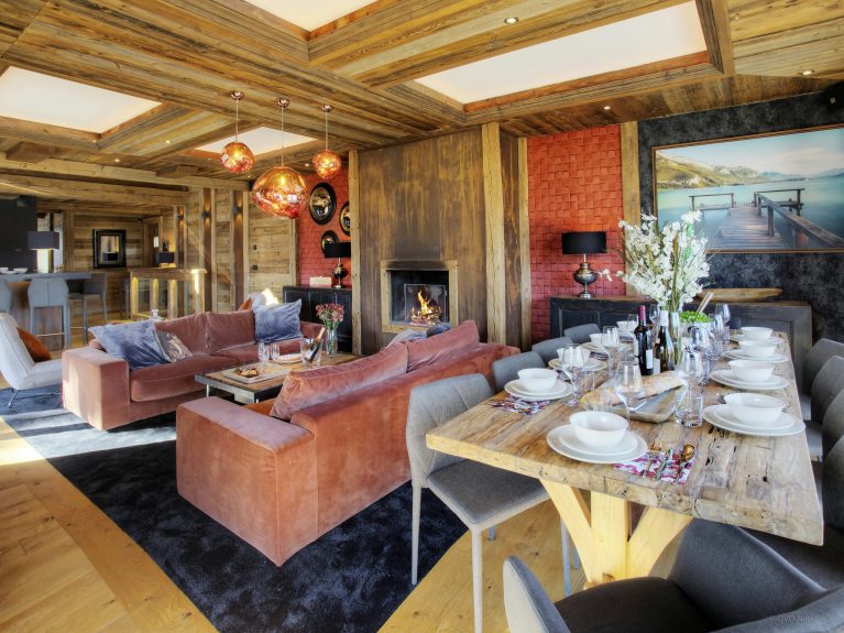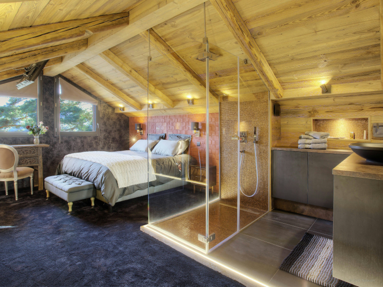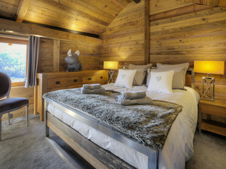 Le chalet principal comprend trois chambres et sept couchages, ainsi que trois salles de bains. L’annexe, quant à elle, se compose de deux chambres doubles avec salles de bains attenantes, et d’un grand salon convivial avec table de billard et jeux.