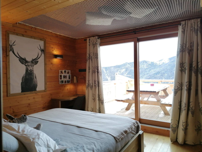 Le chalet "La Grotte de l'Ours" est un magnifique chalet Luxe Prestige, neuf (2020), conçu pour un maximum de 5 familles (20 couchages), d'environ 350m², sur 4 niveaux. Exposé Sud-Est avec terrasses et balcons. Classement meublé de tourisme 5*.