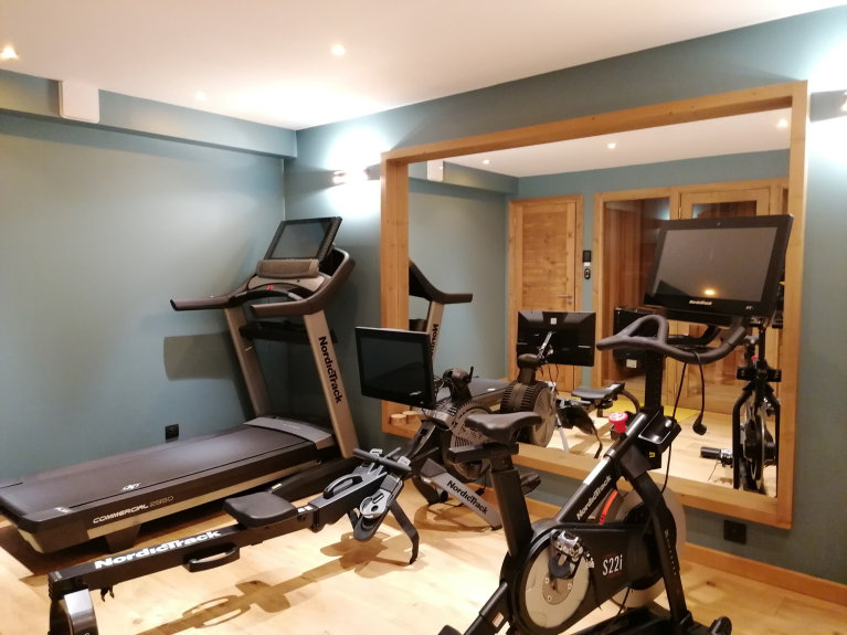 * Salle de sport avec Vélo, Rameur et Tapis roulant avec connexion E-Fit ;