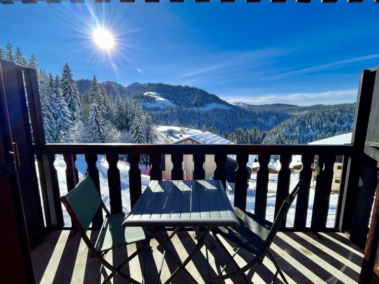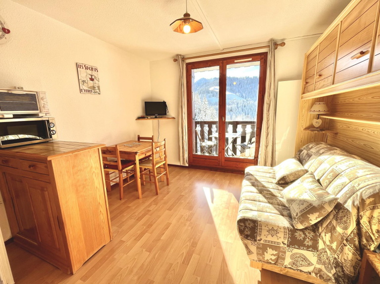 NOTRE AVIS : Studio fonctionnel, bien agencé et décoré dans un esprit montagnard, avec un excellent ensoleillement.