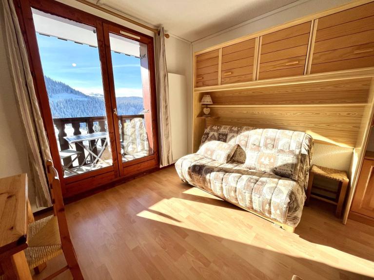 Situé au 3? étage, ce studio plein de charme bénéficie d?un balcon exposé sud offrant une belle vue sur les montagnes, à deux pas d?une des entrées de l?Espace Diamant.