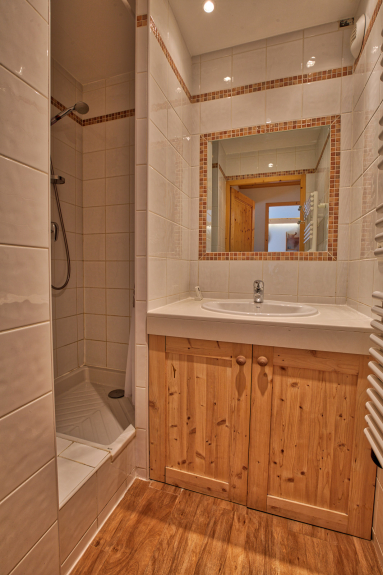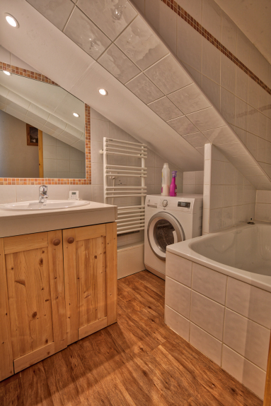 - Deux salles de bains : une avec douche et une avec baignoire et lave linge séchant.