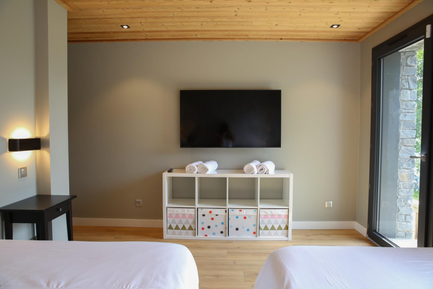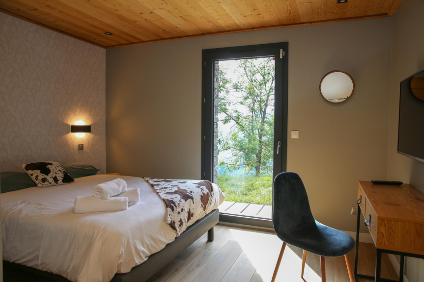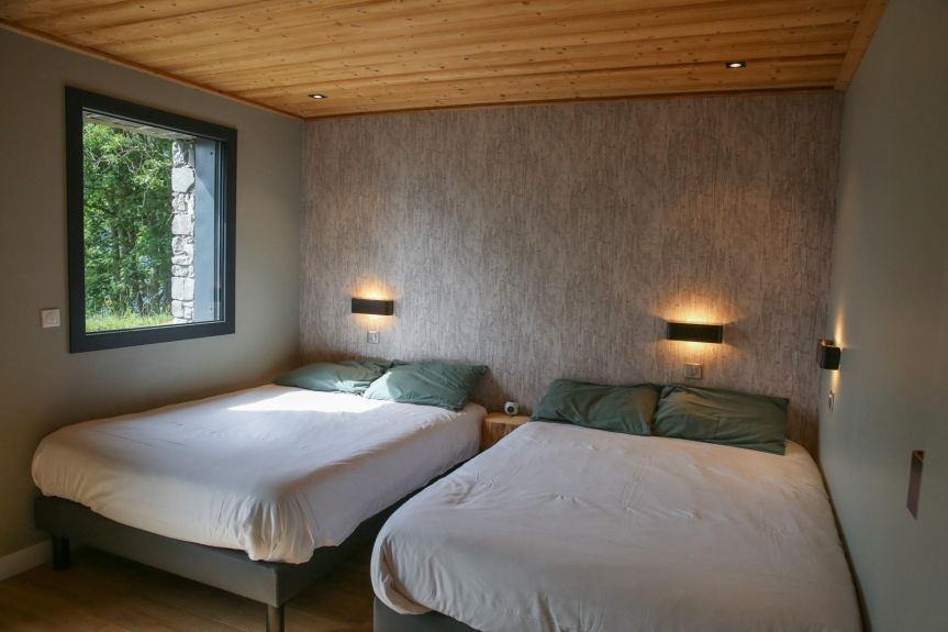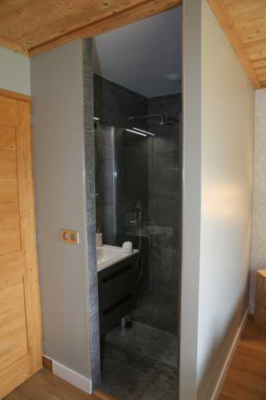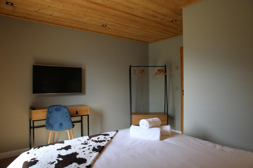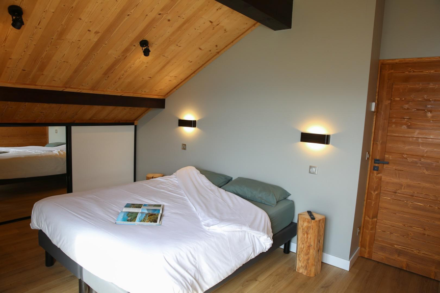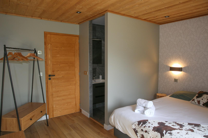 Le chalet offre des prestations et finitions soignés : bois, pierre, douche a l'italienne avec robinetterie encastrée, grands vitrages, granit, électroménager haut de gamme, volets roulants dans toute les pièces, TV dans toute les chambres, literie haut de gamme, ...