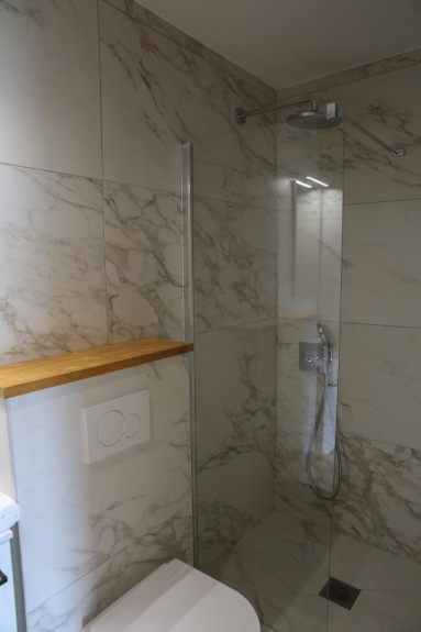 2 grandes chambres double avec lit Queen size 160cm ainsi qu'une salle de douche partagée pour les deux chambres.