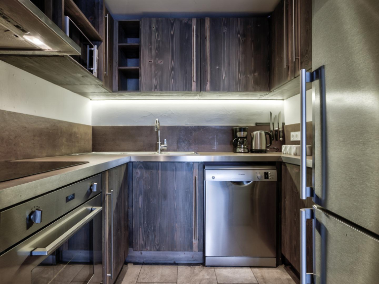 La cuisine / salle à manger est équipée d'un four électrique intégré, d'une plaque de cuisson à induction à quatre feux, d'un grand réfrigérateur-congélateur, d'un grand lave-vaisselle, d'un four micro-ondes, d'un plateau / bouilloire, d'une table à manger et de 8 chaises à manger.