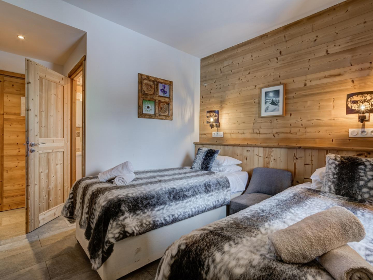 Le Chalet Crocus Blanc, à la fois moderne et traditionnel, est un appartement-chalet de haute qualité bénéficiant d'un emplacement enviable à La Plagne.