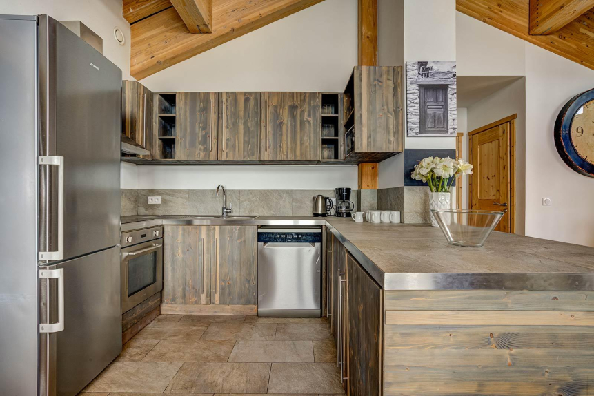 Cet appartement chalet de luxe, réparti sur deux étages, offre un confort alpin traditionnel associé à des équipements contemporains et bénéficie d'une situation idéale à La Plagne.