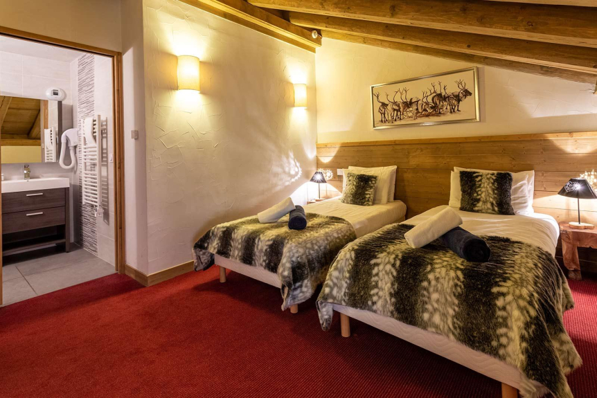 Twin, douche et WC (installations dans la chambre cloisonnée par porte coulissante) - convient pour un lit bébé