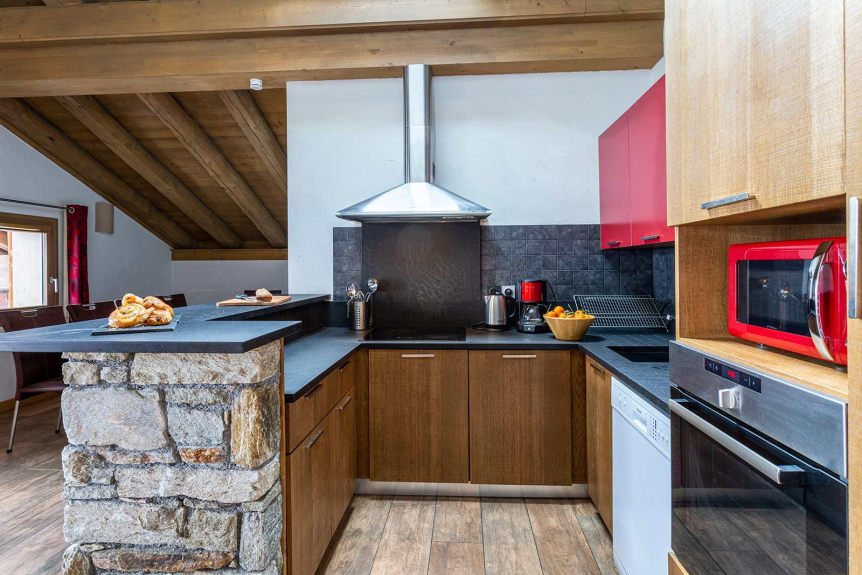 Le style savoyard inimitable est une caractéristique claire des « Chalets Opéra » construits pour les skieurs modernes. L'appartement-chalet Escamillo a de belles fenêtres pour laisser entrer la lumière naturelle et une utilisation intelligente du bois apparent combiné à des équipements de haute qualité améliore l'attrait de ce magnifique logement.