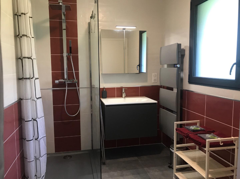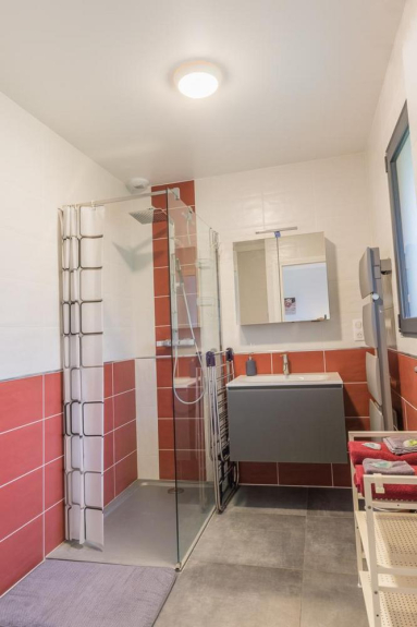 La salle de bain est équipée d'une machine lavante séchante et d’un radiateur connecté pour écouter de la musique :-)