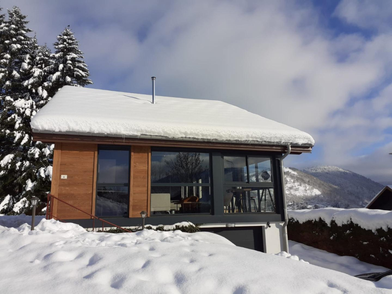 Nous avons agencé ce chalet tout confort, pour profiter un maximum de grands espaces de vies en salon-cuisine , véranda et deux salons. La terrasse ombragé, spacieuse, et à l'abri des regards promet de belles soirées et repas avec vue sur le sommet du Hohneck.