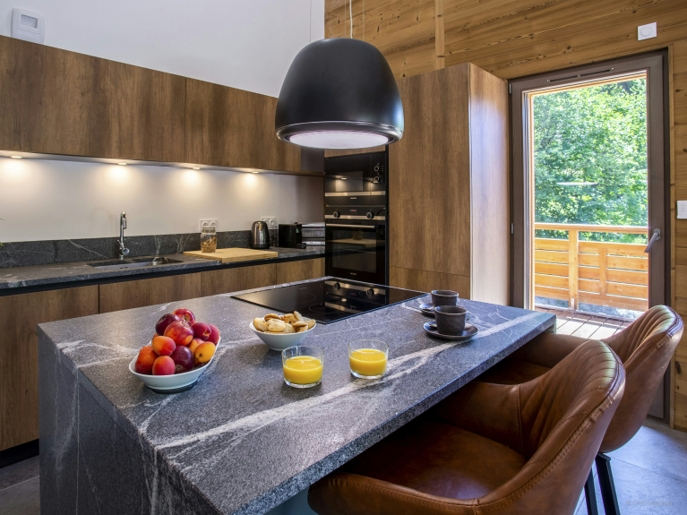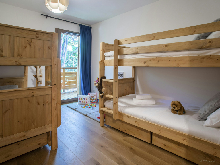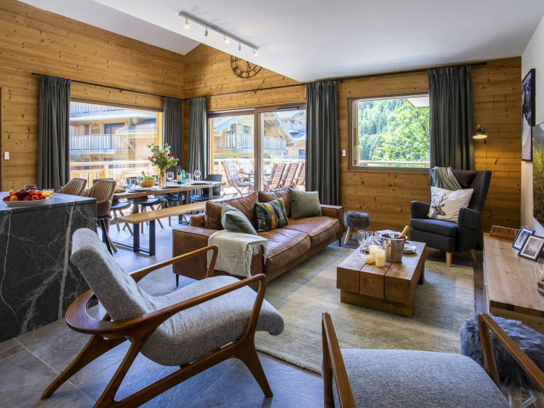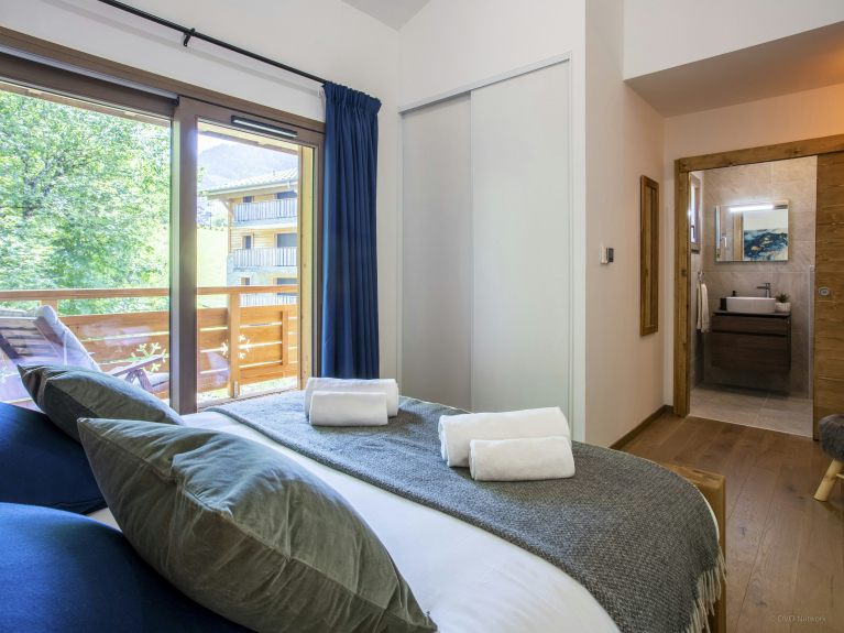 Parce qu’il est situé au troisième étage d’un immeuble, dans un coin tranquille de la vallée de l’Abondance, sa terrasse offre des vues splendides sur la forêt et les montagnes alentour.