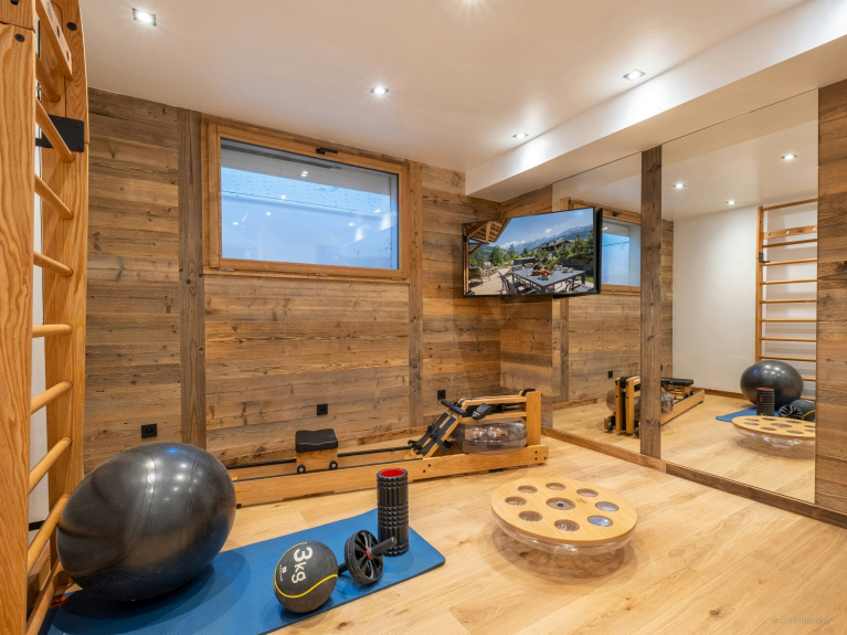 Vous trouverez une salle de sport au rez-de-chaussée. Elle sera parfaite pour vous échauffer avant de dévaler les pentes. Le local à skis est au même niveau, équipé d’un sèche-chaussures chauffant.