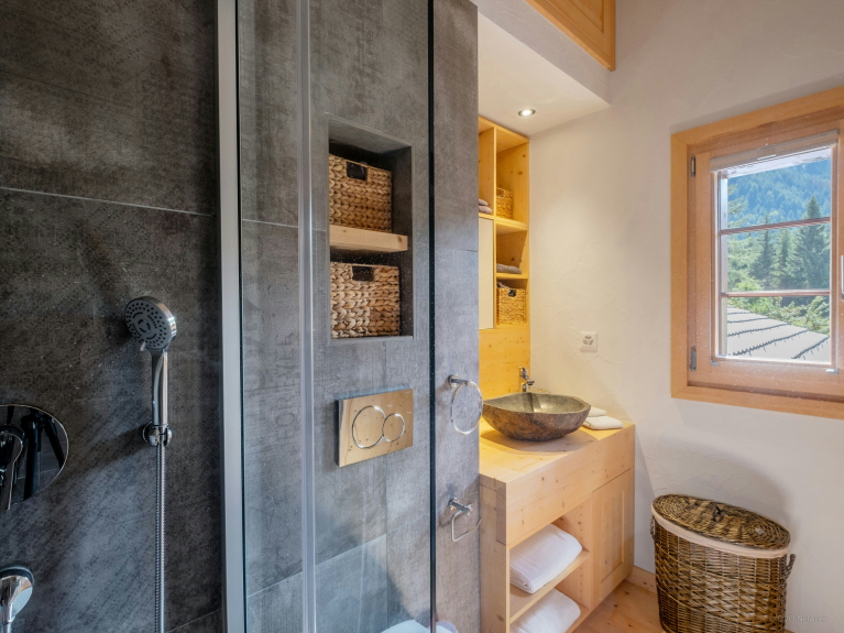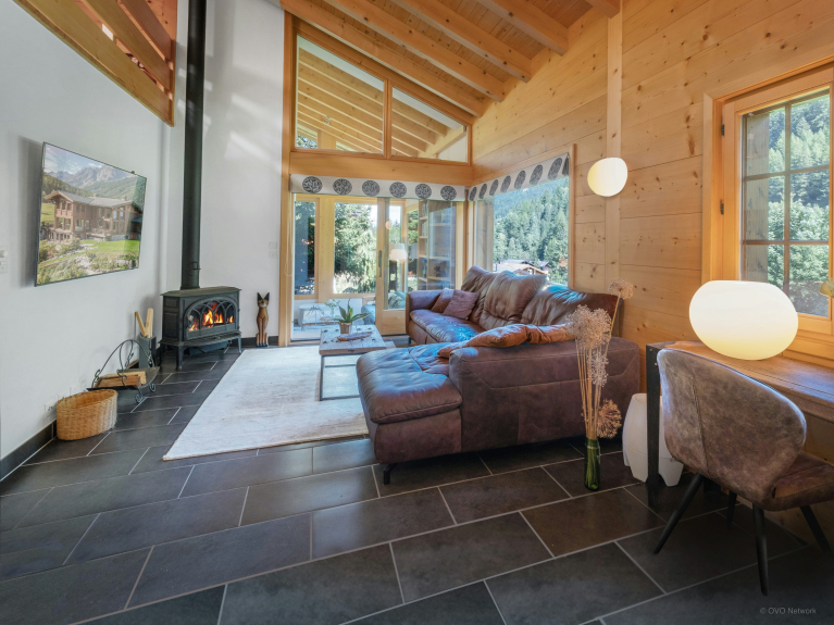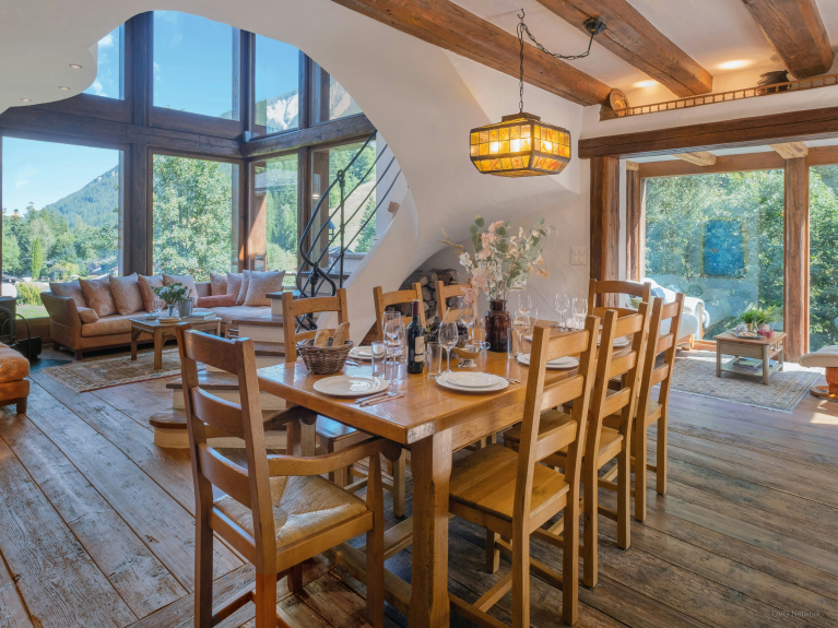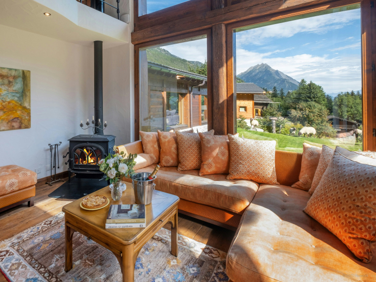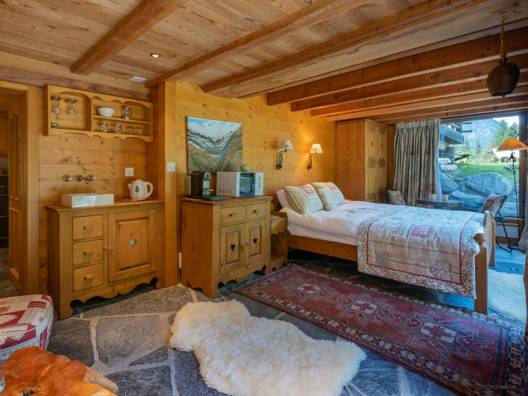 Ce somptueux chalet à Saleinaz, en Suisse, est un véritable bijou ! Réparti sur trois étages, le chalet Cinq Moutons peut accueillir 14 personnes (jusqu’à 12 adultes) dans sept chambres dont quatre suites.L'une d'entre elles, est une mezzanine avec 1 lit double et 2 lits simples.