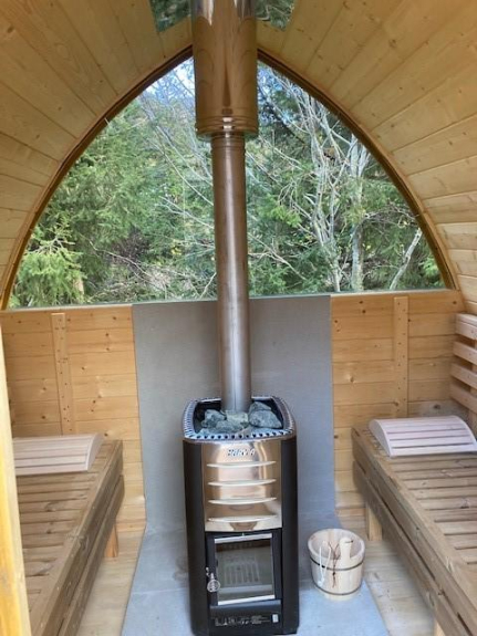 Ce chalet est équipé d'un poêle à granules, nous fournissons les granules et le bois pour le sauna.