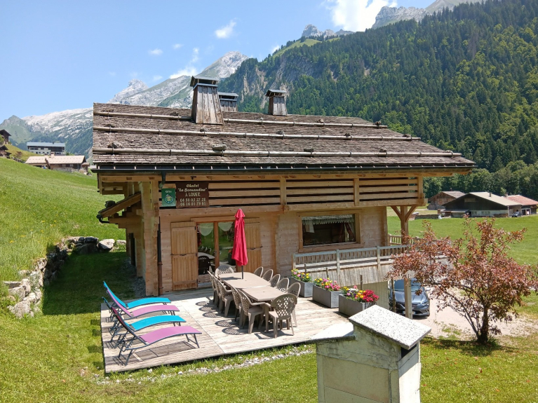 Loue joli chalet montagnard tout confort avec vue magnifique sur la pointe percée secteur calme et reposant hameau les plans sur la route du col des annes.