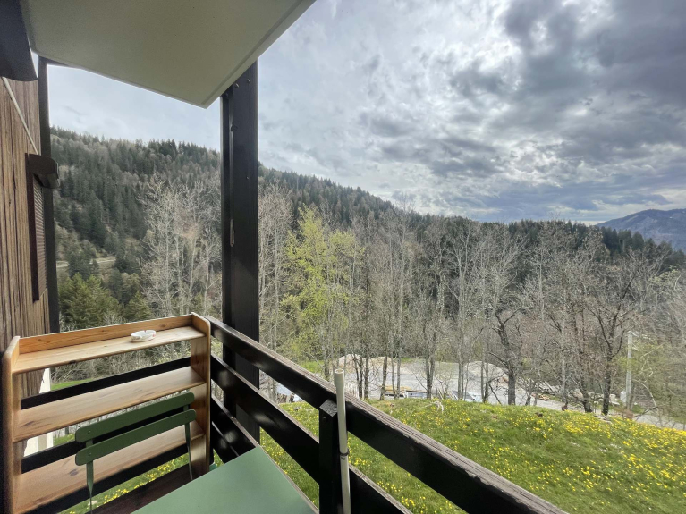 Studio cabine avec vue sur le Mont Charvin et la vallée. Situé dans le village de Notre Dame de Bellecombe, toutes les commodités sont accessibles à pieds, l'aire de jeux est à 100m ainsi que l'arrêt de ski bus.
